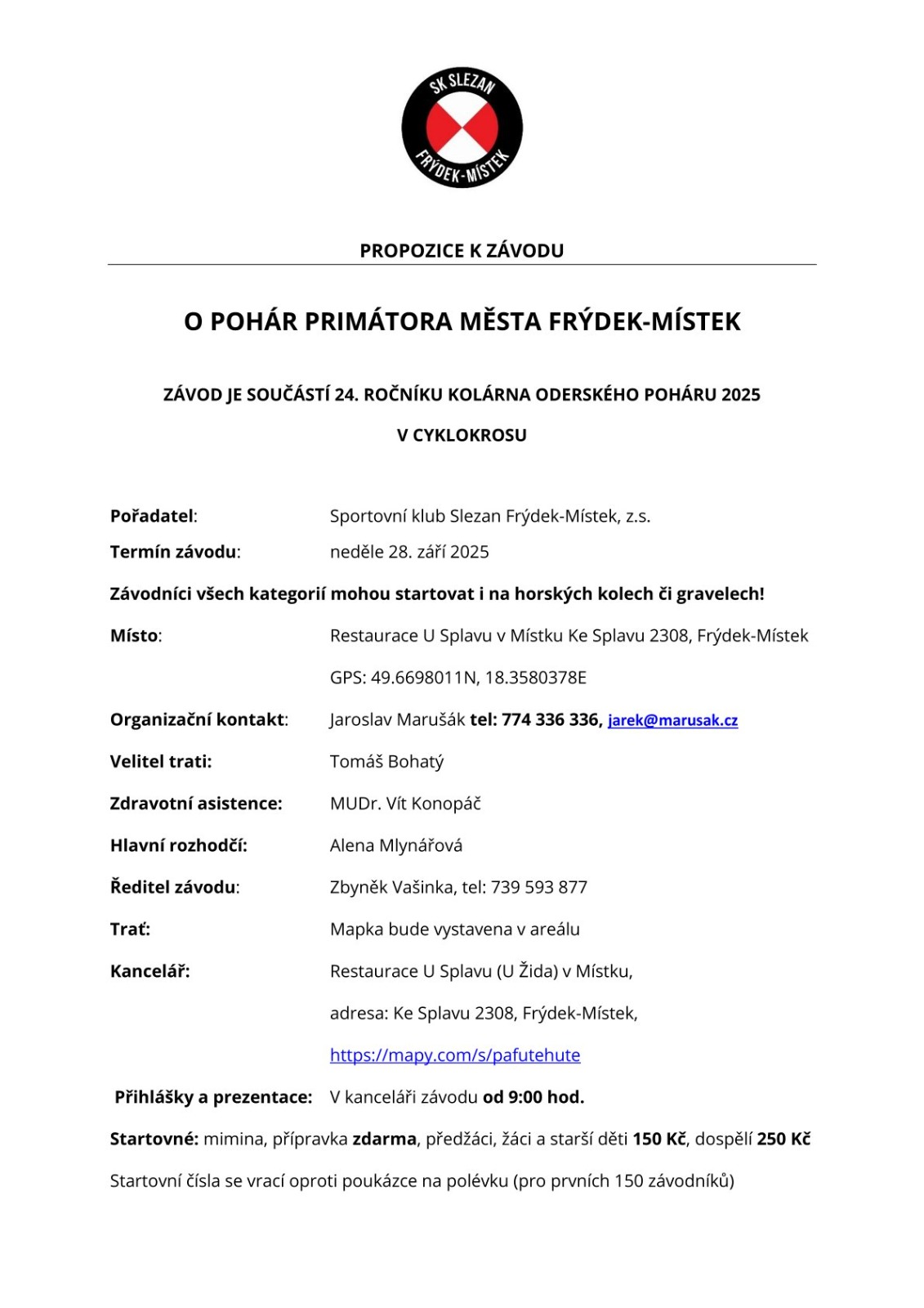 Propozice na 4. závod KOLÁRNA-RIDLEY-OP ve Frýdku-Místku